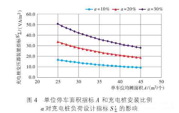 在大型快速充電樁安裝率超過73%時,變壓器充電樁指標超過40VA/m2,此時對充電樁的投資較大。