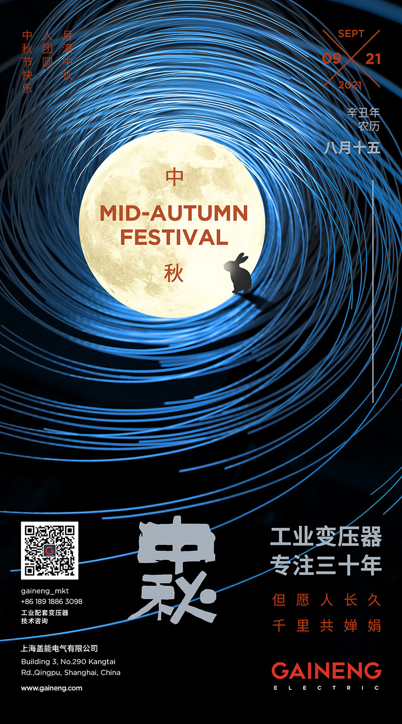 一輪明月思悠悠,兩地月光似水流,三生有幸做朋友,四季輪回到中秋,五福臨門來(lái)送喜,六六大順伴永久,七星伴月人歡樂(lè),八仙桌上敬美酒。上海蓋能電氣預(yù)祝大家中秋快樂(lè)。